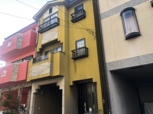 真ん中の黄色い建物が、今回お客様よりご依頼いただいた建物です。