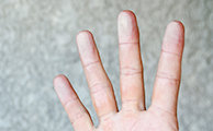 チョーキング現象と呼ばれる症状で、紫外線によって塗料が分解され、粉状となっている劣化状態です。