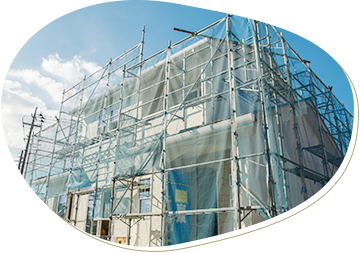 事故が起きず、安心して施工が進められるよう、足場を組み立てていきます。